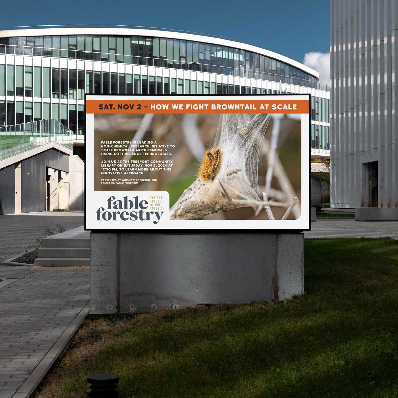 As Winslow's design thinking pushed beyond the farm's fence lines, a new initiative emerged: Fable Forestry. Using robotics, AI, and community science to combat invasive species at scale, Fable Forestry connects landowners with removal providers and converts invasive biomass into biochar for soil restoration.